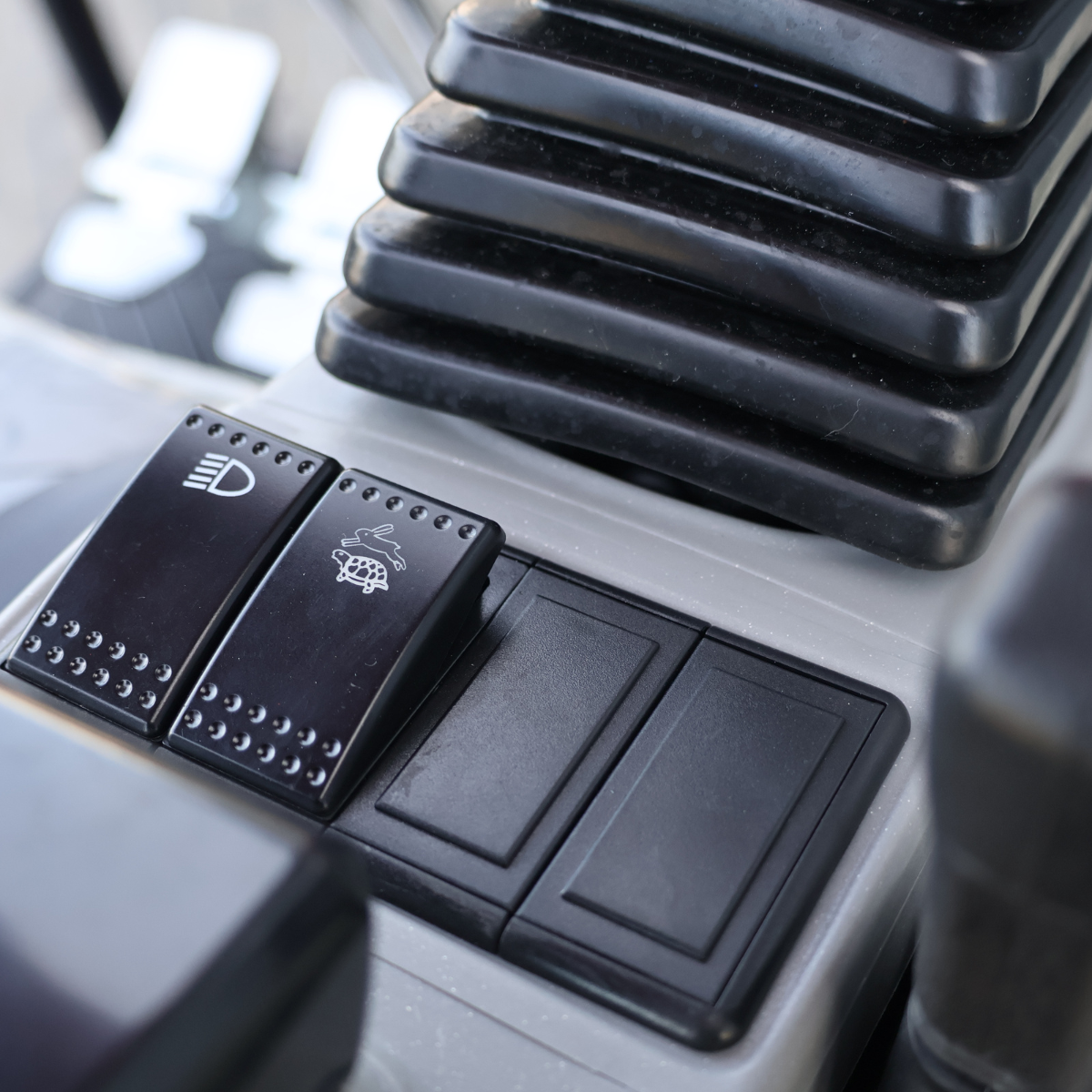 Koparka posiada przełącznik niska-wysoka prędkość pozwalający na dostosowanie prędkości do wykonywanych zadań.