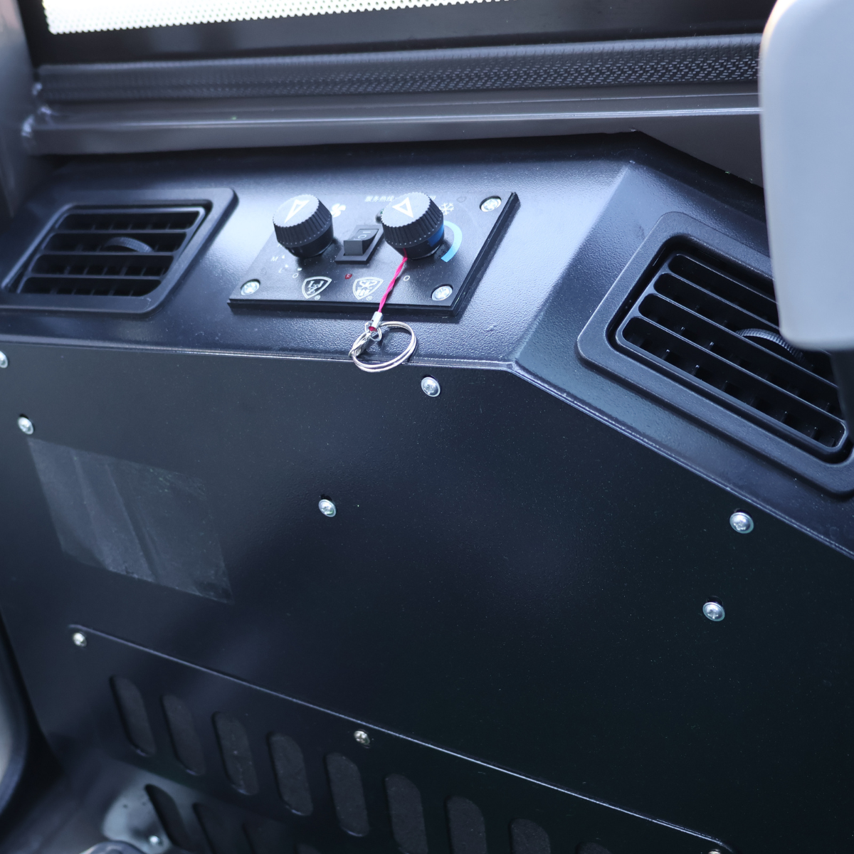 Zamykana kabina pozwoli ci na pracę w zimę, w deszczu, w słońcu i dowolnych warunkach atmosferycznych komfortowo i przyjemnie. Kabina jest ogrzewana oraz posiada wbudowany wentylator, zapewniający chłód w gorące dni.
