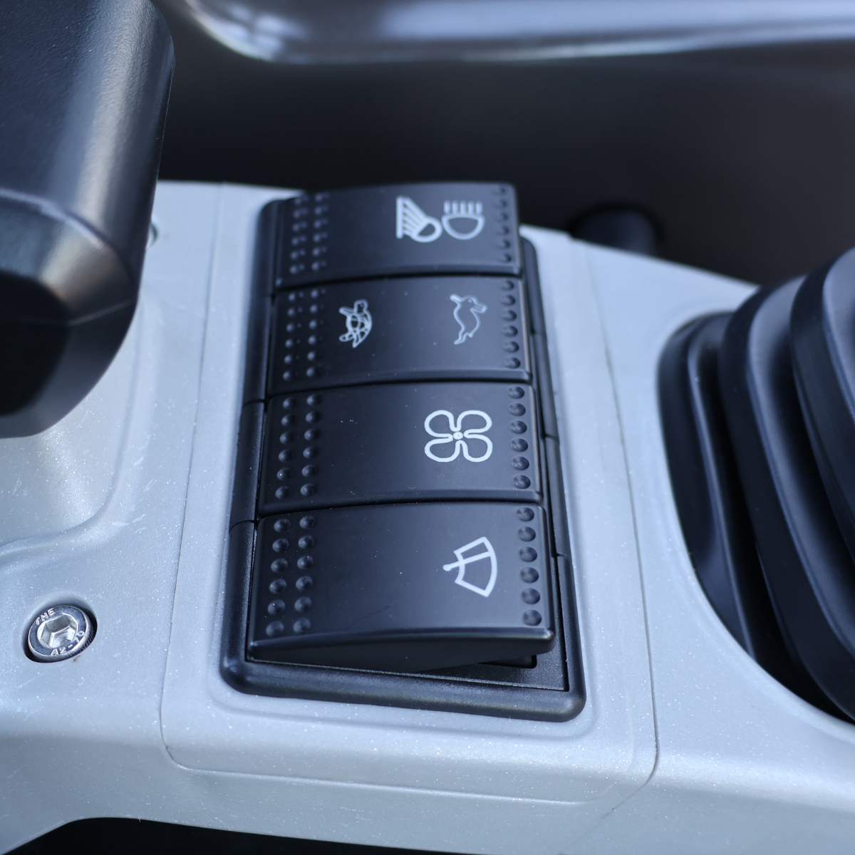 Koparka posiada przełącznik niska-wysoka prędkość pozwalający na dostosowanie prędkości do wykonywanych zadań.