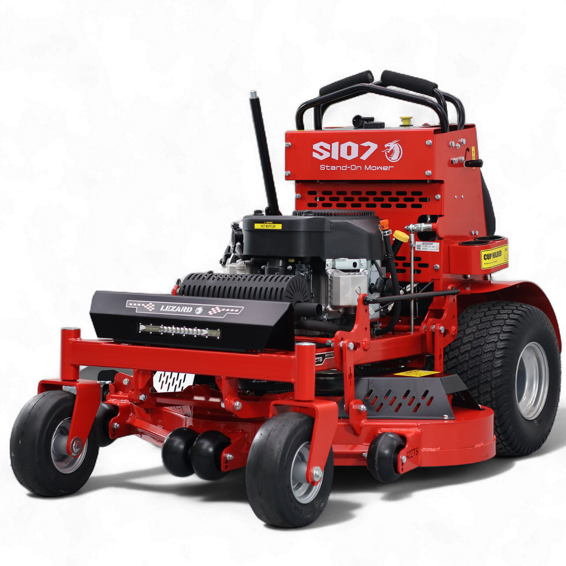 LEZARD S107 jest profesjonalnym modelem traktorka kosiarki stojącej Stand On z zerowym promieniem skrętu.