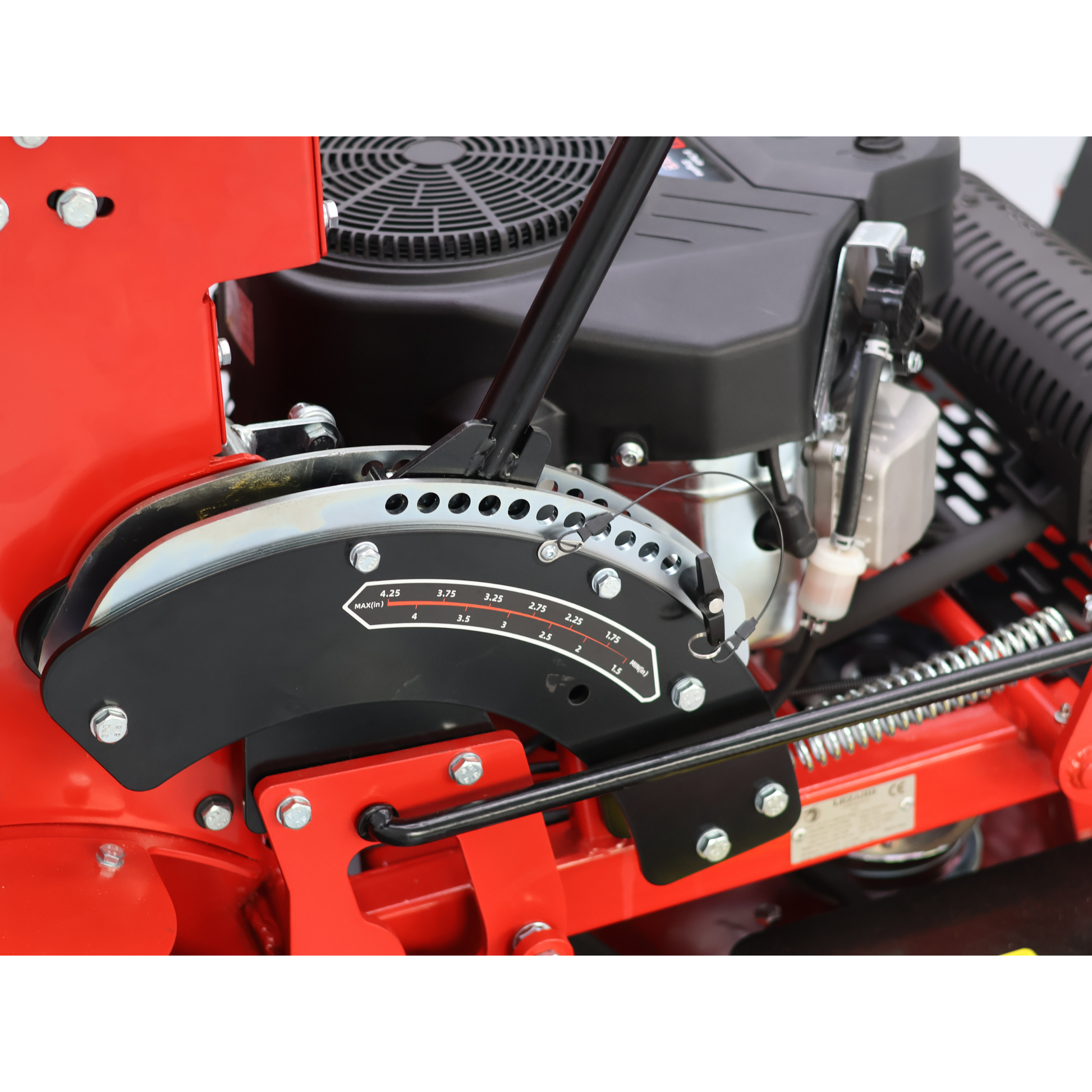 Wysokość koszenia jest regulowana za pomocą pedału i wynosi od 3,8cm do 11,4cm.