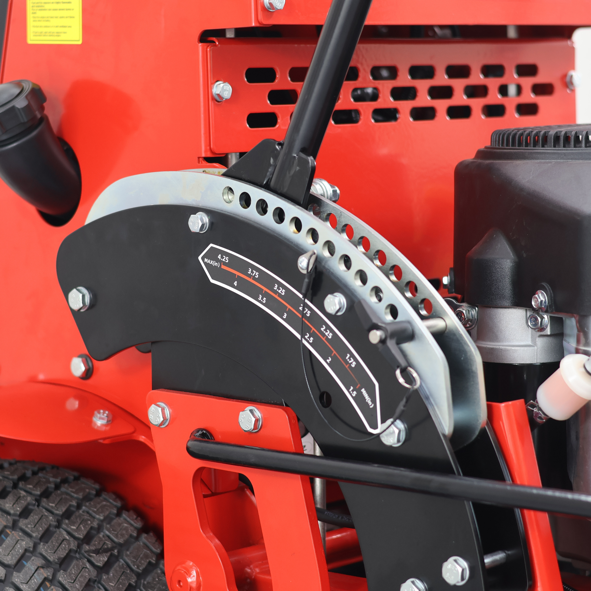 Wysokość koszenia jest regulowana za pomocą pedału i wynosi od 3,8cm do 11,4cm.
