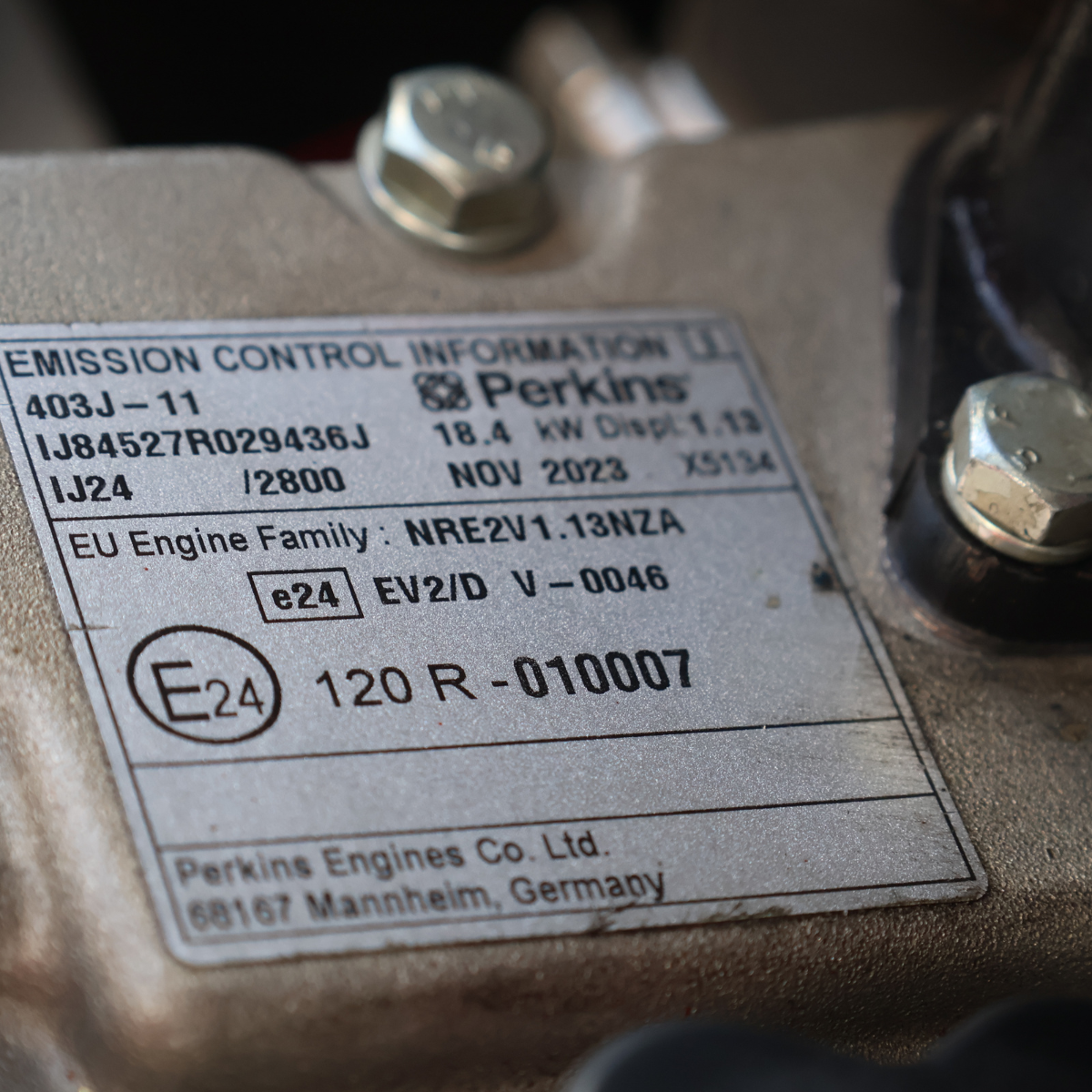 Maszyna jest wyposażona w 3-cylindrowy silnik angielskiej marki PERKINS o mocy 25KM. Ten silnik to moc i trwałość na lata.